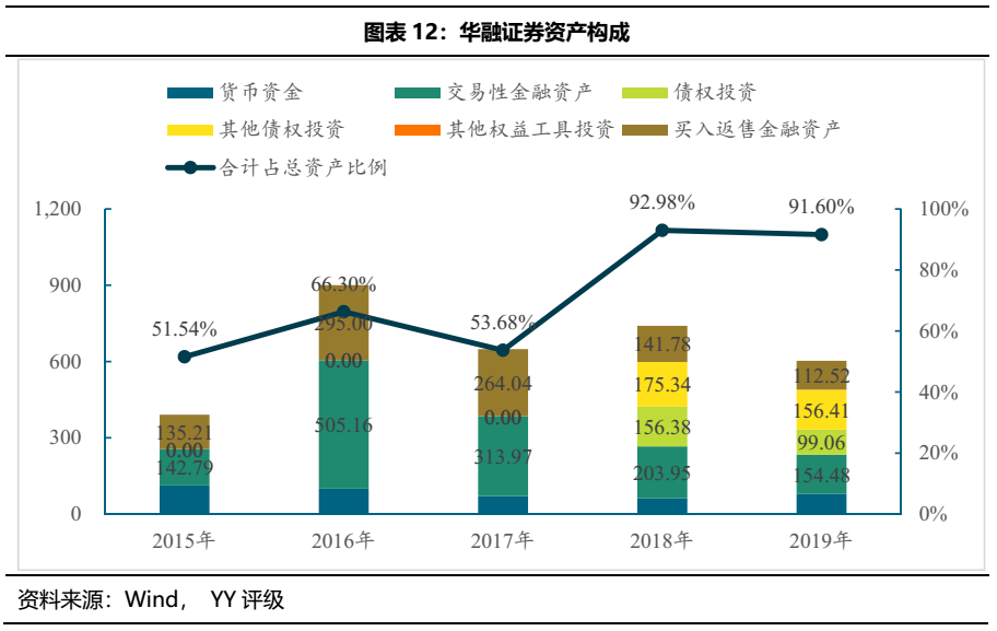 從近年資產構成來看,2018年以來,華融證券資產從交易性金融資產逐漸轉向債權和其他債權投資,資產期限結構長期化。