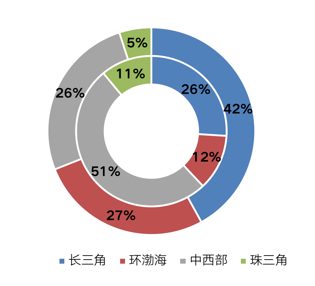 此外,隨著政策窗口期來臨,房企通過戰略“瘦身”,得以趁機調整布局,推進區域深耕戰略,蓄勢待發迎接下一輪投拓。例如旭輝集團,一直以來堅持區域深耕戰略,多次調整優化組織架構,控制管理半徑,以提高效能、更好地配合區域深耕落地。2021年上半年,旭輝顯著增加了長三角及環渤海的投資力度,新增土地建筑面積占比分別較2020年全提升16和15個百分點。