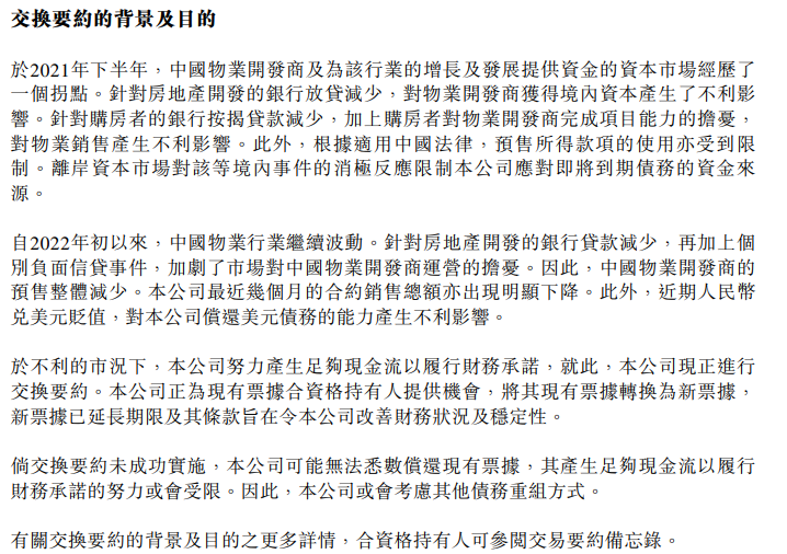 交換要約一經(jīng)實行,將改善本公司的整體財務(wù)狀況、延長其債務(wù)的到期日、強化其資產(chǎn)負債表及提升其現(xiàn)金流管理。