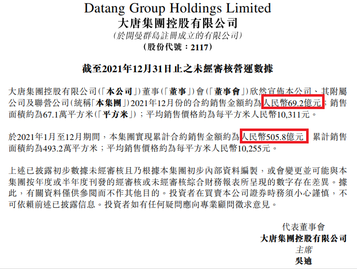 我們都說2021下半年房地產(chǎn)慘,但是對比起來,大唐集團控股的2021年12月似乎表現(xiàn)不錯。