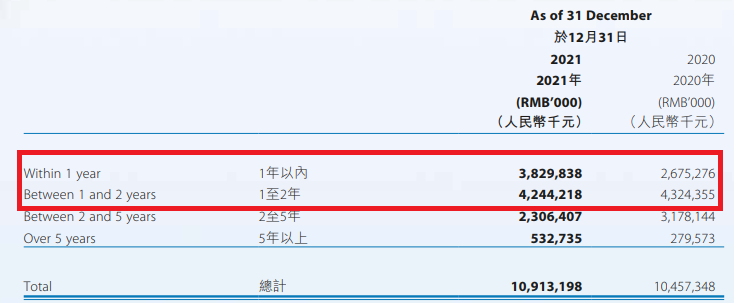 其中,一年期的債務(wù)超38億元,2020年末時該數(shù)字為不到27億元。