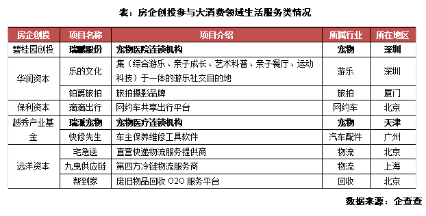 從生活服務相關的品牌來看,寵物經濟受到重視,如碧桂園創(chuàng)投參與投資的瑞鵬股份,以及越秀產業(yè)基金參與投資的瑞派寵物;此外還包括有室內游樂、旅拍、物流等等都是房企資本的關注重點。