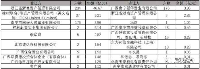 廣西省持牌AMC是4+2的格局(廣西金控、廣投資產),從成交數據來看,東方和廣投沒有查到成交記錄。
