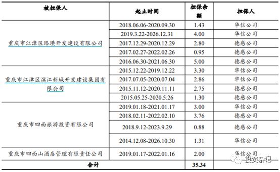 某平臺披露,截至2019年3月底,公司對外擔保余額是35.34億元,擔保方式均為抵押擔保或者是保證擔保。其披露的明細如下: