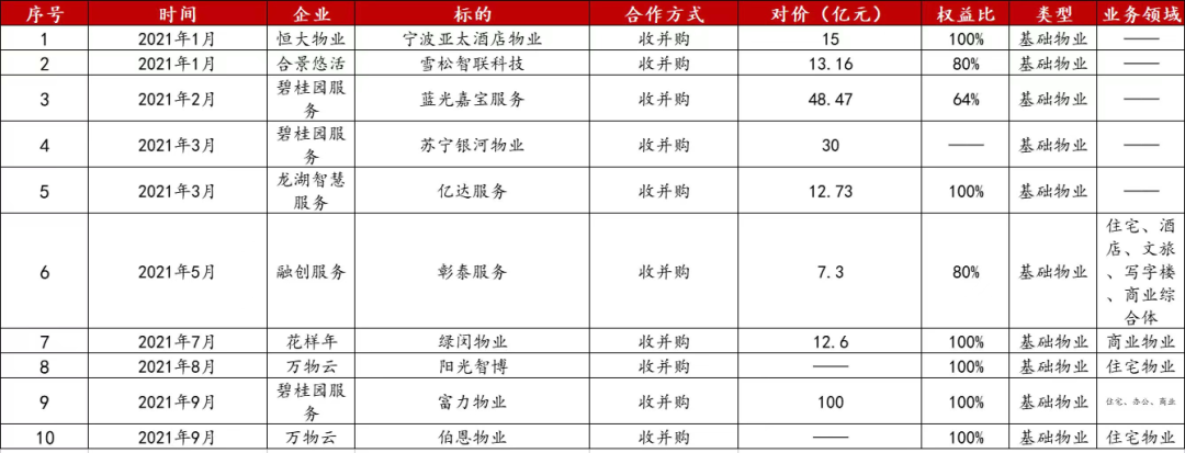 圖:2021年物業(yè)管理行業(yè)重大收并購事件示例