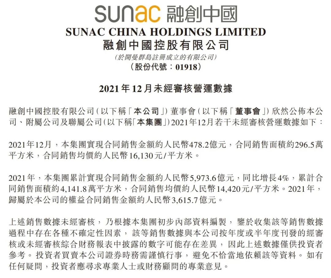 接著2021年底,據新京報消息,融創中國出售上海虹橋商務區寫字樓、杭州核心地段酒店及寫字樓等三個項目,預計交易總價約26.8億元。