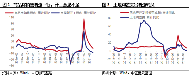 銷售資金回籠預期下行對房企拿地策略形成負向反饋,拿地積極性和拿地能力均受到抑制。2021年以來房地產開發投資增速在基數效應影響下呈現倒V型走勢,截至10月末累計同比增速為7.2%,增速持續收窄,9月單月投資同比轉負。從結構上來看,2021年1-10月土地購置費同比僅增長0.40%。趨緊的預售款監管以及融資限制使得房企資金端持續承壓,房企在資金面偏緊的情況下,資金將優先用于保交付,尚有余力才會考慮拿地,疊加市場景氣度下行,房企再投資意愿將進一步收縮。