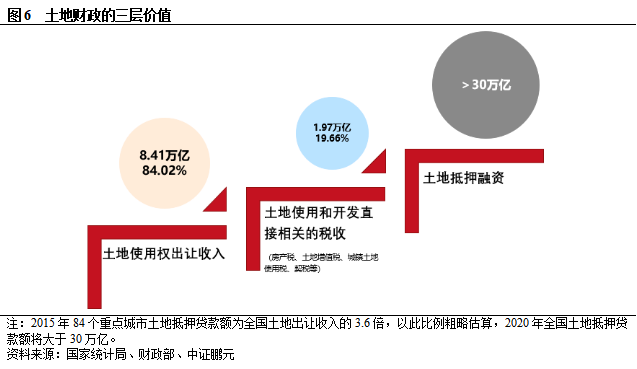 2020年地方實現國有土地出讓收入8.41萬億元,土地使用和房地產直接相關的稅收1.97萬億元,占地方一般公共預算本級收入的比重分別為84.02%和19.66%。由于國有土地使用權出讓收入大部分用于土地征地和拆遷補償支出(2014年該支出比例占到55%),僅僅依靠土地出讓收入尚不足以支撐地方政府運行。自2010年起,土地抵押規模相對于土地出讓規模開始上升,2015年(有公開數據的最新年份)僅84個重點城市的土地抵押貸款額就已經是全國土地出讓收入的3.6倍,全國層面的土地抵押貸款規模則會更大,其中包括大量城投平臺進入土地抵押市場進行融資。因此,房地產風險觸動土地財政的地方不僅在于土地出讓收入及相關稅收的下滑,還包括抵押資產貶值的可能。