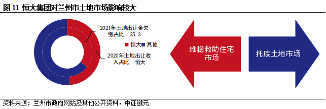 此外,多家大型民營房企發生流動性危機,已售未交付樓盤規模較大,部分地方政府出于托底及維穩需要,要求當地國企出手救助。同時,地方政府土地市場和部分陷入流動性危機房企關聯度高,綜合財力受影響較大,使區域城投面臨一定風險敞口。例如蘭州市2020年全市國有土地出讓收入198.2億元,其中恒大集團關聯公司權益拿地金額69.92億元,占35.3%,而蘭州市自然資源局2021年7月22日公告顯示,有41家單位欠繳土地出讓金,其中有20家為恒大集團關聯公司。