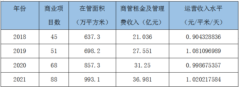 毛利率低的原因在于其租金收入水平極低,資料顯示,2018年至2020年,寶龍商業的平均運營管理收入水平(即租金及管理費)始終徘徊在1元/平方米/天,而業內的龍湖商業2021年的平均收入水平是2.98元/平方米/天,新城商業2021年平均收入水平約2元/平方米/天,萬達商業2021年上半年的平均收入水平是2.15元/平方米/天。