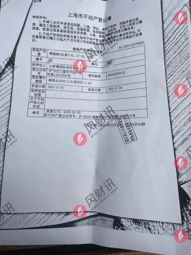 據(jù)購房者提供的抵押合同復(fù)印件顯示,世茂和陸家嘴國際信托簽訂了一份債權(quán)數(shù)額9.5億元的房地產(chǎn)抵押合同,債務(wù)履行期限為2020年1月21日到2022年1月20日。