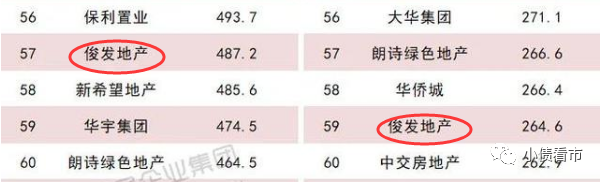 2018年,俊發地產銷售金額為550億元,排名第49;2019年全口徑銷售金額為528.4億元,行業排名第64。