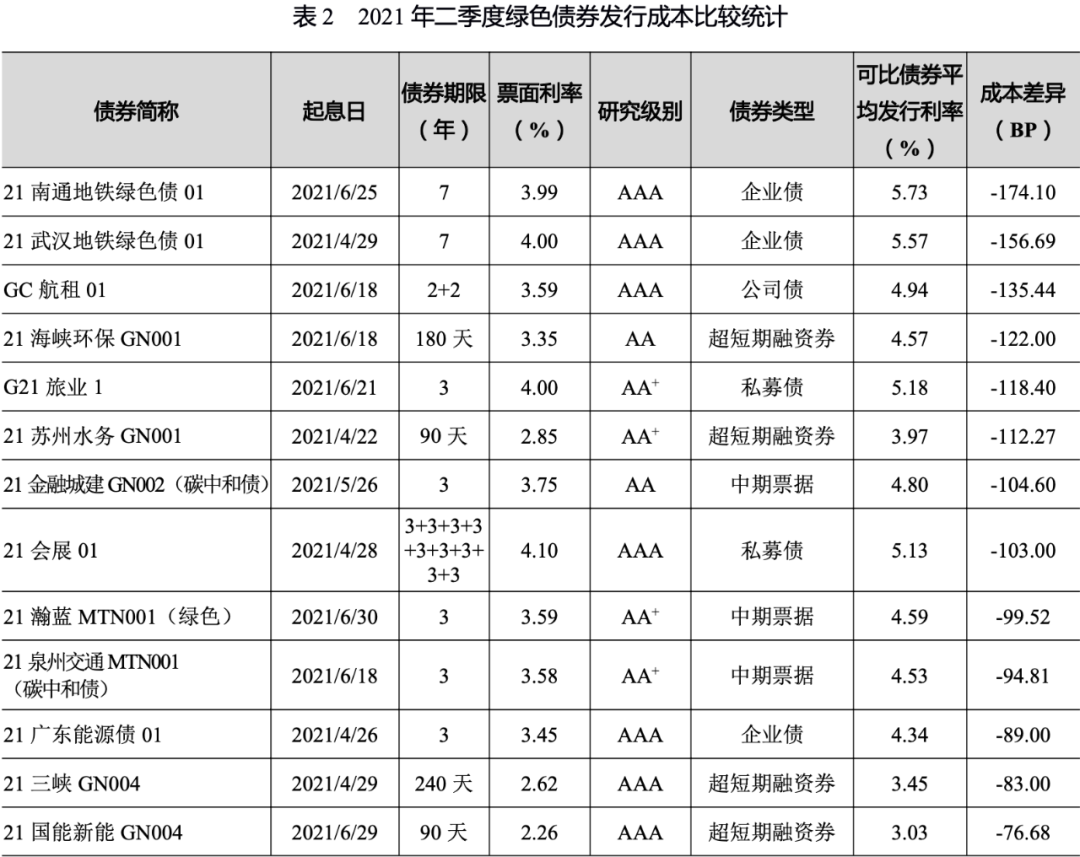 (二)二季度新發(fā)綠債發(fā)行成本情況