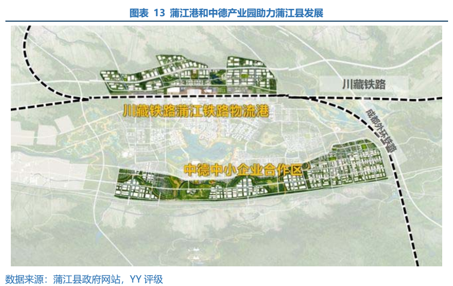蒲江縣經濟規模相對較小,但是屬于成都“半小時經濟圈”,具有一定的發展潛力,政府性基金收入規模相對較高,債務率相對較低。蒲江縣為成都市遠郊縣之一,支柱產業為小機械制造和生態食品。蒲江縣區位較好,屬于成都“半小時經濟圈”,毗鄰天府新區,待天蒲快速路新建工程(18km)完工后將進一步拉近蒲江縣和天府新區距離。蒲江縣是“進藏入滇”的咽喉要道,投資百億元的川藏鐵路蒲江鐵路物流港已在建設,中德國別合作區已招商,蒲江縣具有一定的發展潛力。2020年實現GDP178.18億元,2018、2019年GDP增速為10%左右,一般公共預算收入為10.94億元,經濟規模偏小但增速較高。近年蒲江縣房價為上升趨勢,根據房天下,2020年住宅成交均價在7600元左右,2020年政府性基金收入24.66億元,政府性基金收入相較于經濟規模偏高。地方債務率在250%左右,債務率相對偏低。