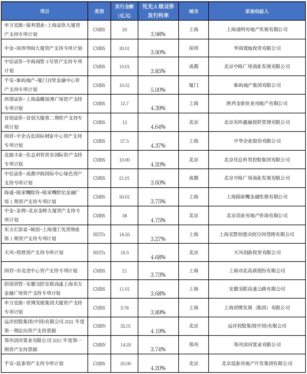 表:全國范圍內發行的辦公項目資產證券化項目匯總