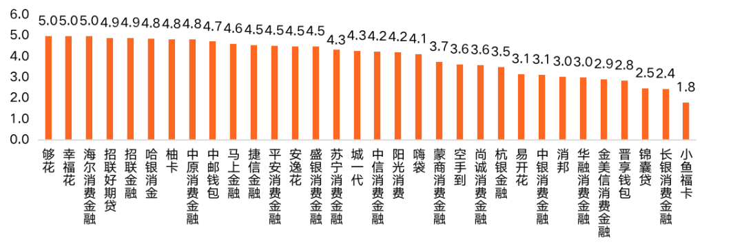 圖 6:2021年前三季度消費(fèi)金融公司APP月使用時(shí)長(zhǎng)評(píng)分情況