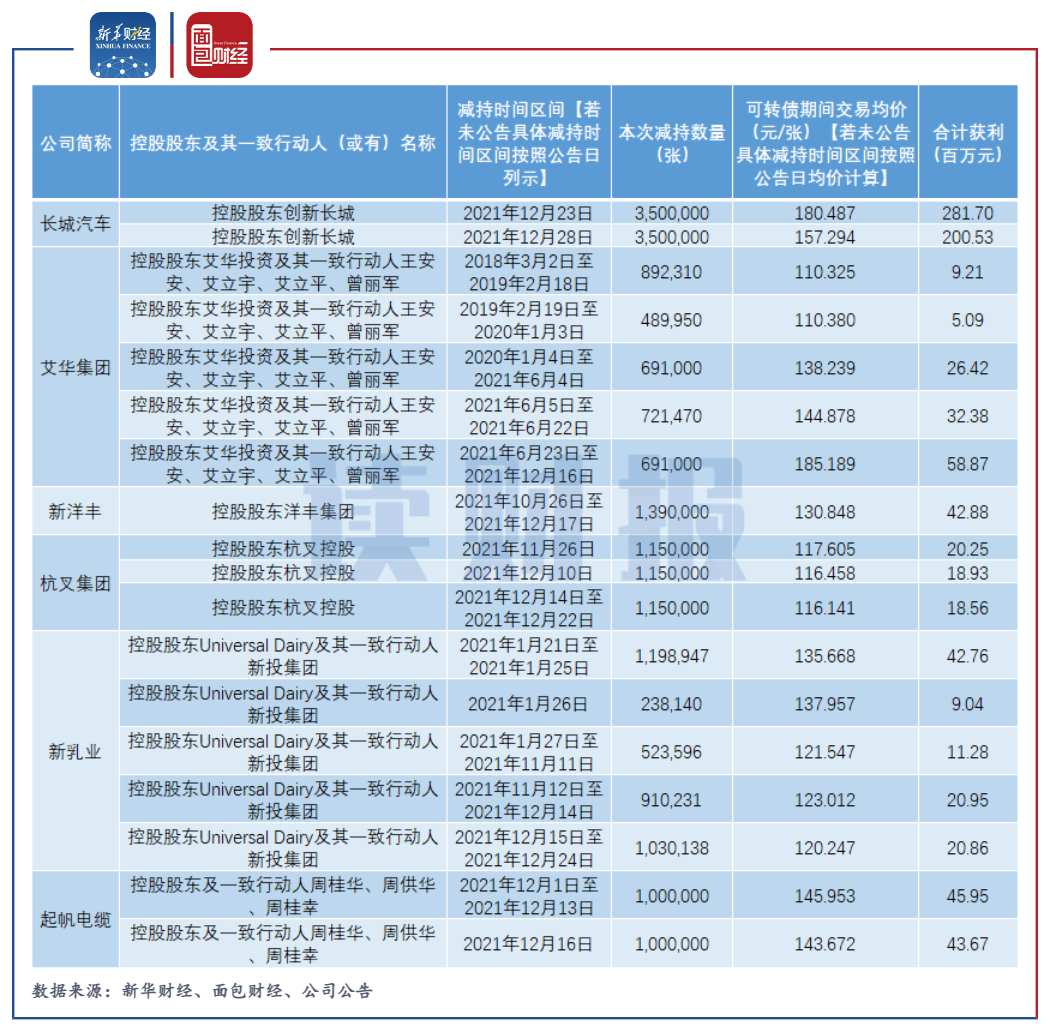 據(jù)不完全統(tǒng)計,僅2021年12月份以來,就有包括長城汽車、艾華集團、新洋豐在內(nèi)的逾8家上市公司發(fā)布了控股股東減持可轉(zhuǎn)債的公告。