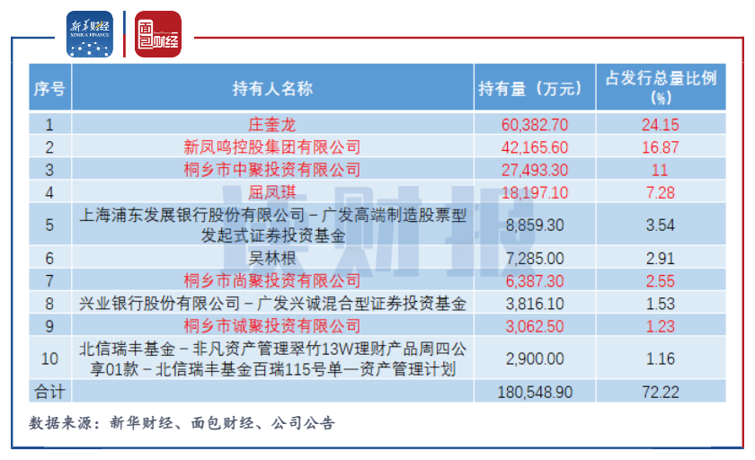 值得一提的是,早在2018年,公司在發(fā)行上一支可轉(zhuǎn)債(以下簡稱“新鳳轉(zhuǎn)債”)時莊奎龍、恒聚投資、中聚投資共計配售730萬張。在2018年7月23日至9月21日期間莊奎龍、恒聚投資、中聚投資合計減持新鳳轉(zhuǎn)債430.6萬張,按照期間交易均價102.89元/張估算,獲利近1244萬元。