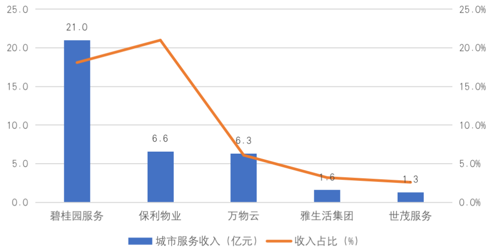 2021年上半年典型企業城市服務收入及占比