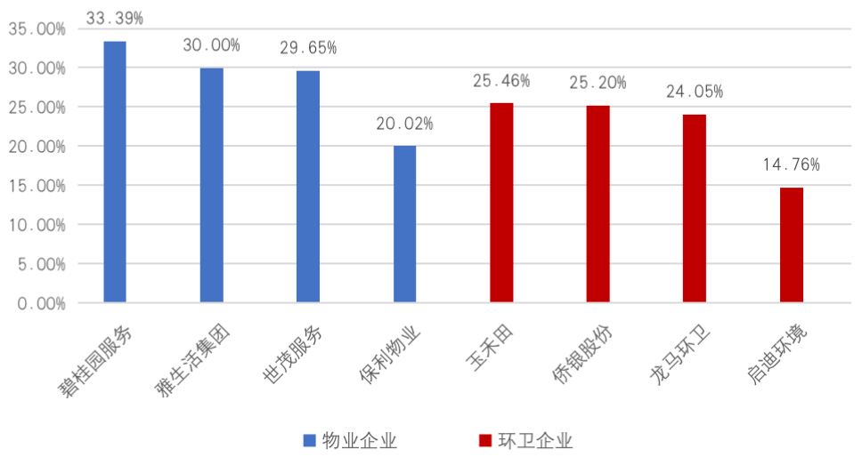 2021年上半年典型物企、環衛企業毛利率水平(%)