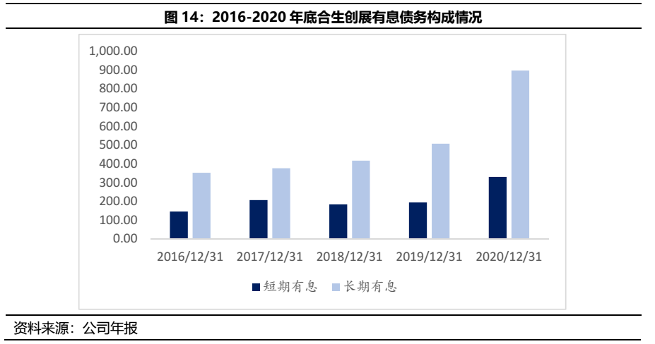 雖然相關監管指標尚可,但是隨著近年來公司加快周轉、擴大業務版圖,有息債務規模持續攀升。主要由于長期債務規模的的擴大,截至2020年末,合生的有息債務達到1,227.13億元,較上年末同比增長了75%。