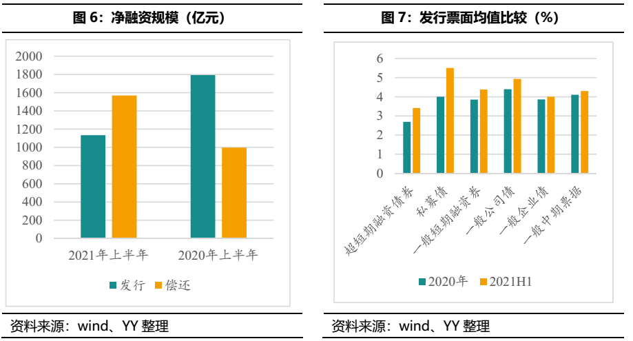 受永煤時間擾動,上半年鋼鐵行業(yè)利差曾一度走闊,折價成交頻現(xiàn)。鋼鐵行業(yè)的利差自2020年11月以來一路走高,直到2021年2月末才逐漸緩和,截至2021年6月末,鋼鐵行業(yè)利差保持在240BP左右的水平。02 2021上半年凈融資與存續(xù)債券情況根據(jù)YY評級對鋼鐵行業(yè)主體分類并結合wind,我們統(tǒng)計了2021年上半年鋼鐵行業(yè)的凈融資與存續(xù)債分布情況。