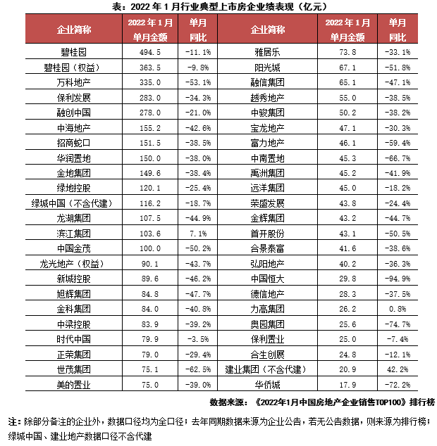 01 合約銷售 1月開局慘淡百強房企業(yè)績同比降低近4成