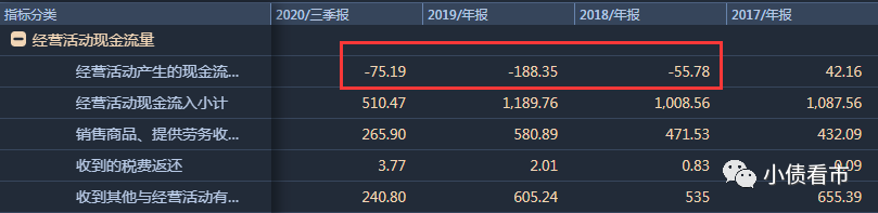 2018年至2020年前三季度,海淀國資經營性現金流凈額分別為-55.78億、-188.35億以及-75.19億元,對債務和利息的保障能力降低。