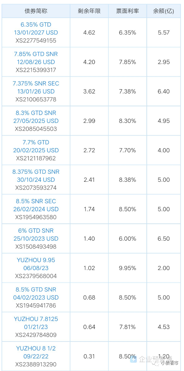 《小債看市》統計,目前禹洲集團存續美元債13只,存續規模56.75億美元,其中將有超10億美元債于一年內到期。