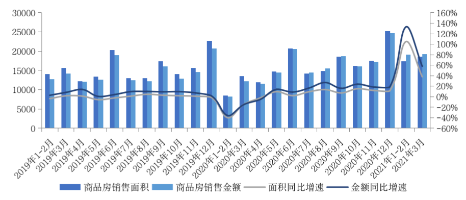 根據國家統計局公布的銷售金額和銷售面積計算,2021年1-3月份全國商品房均價為10658元/平方米。從3月單月來看,全國商品房均價達到10313元/平方米,繼2月之后再次破萬。