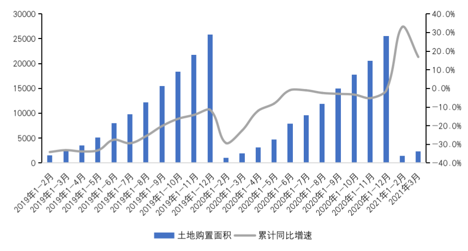 一季度土地購置面積2301萬平方米,同比增長16.9%,較2019年一季度仍下降9.5%。土地成交價款809億元,同比下降17.3%,較2019年一季度更是下降32.2%。