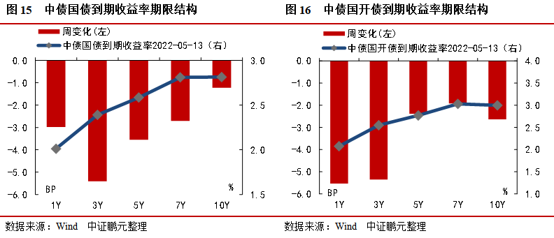 利率債債方面,上周中債國債到期收益率收于2.01%至2.81%之間,各期限品種到期收益率變化幅度在-5.41BP至-1.23BP之間。其中3年期期限品種下行幅度最大,為5.41BP,10年期期限品種下行幅度最小,為1.23BP。中債國開債到期收益率收于2.08%至3.03%之間,各期限品種到期收益率變化幅度在-5.53BP至-1.92BP之間。其中1年期期限品種下行幅度最大,為5.53BP,7年期期限品種下行幅度最小,為1.92BP。