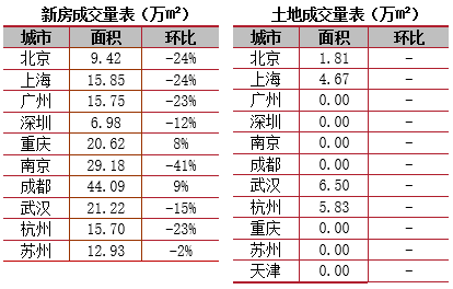一線城市:四城成交環(huán)比均有所回落,其中,北京、上海、廣州降幅都在20%左右,深圳環(huán)比小幅回落,下降12%。