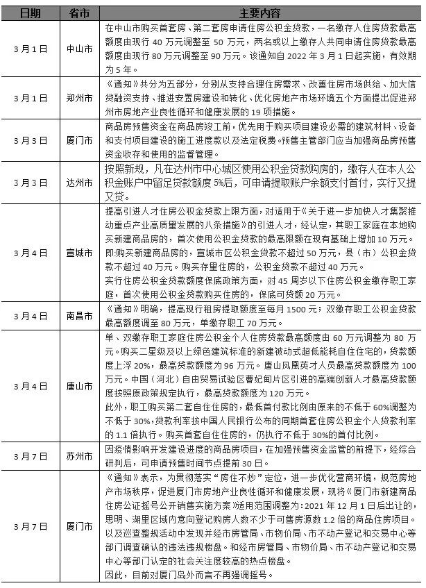 地方層面,鄭州出臺19條新政,放寬限購、取消認(rèn)房又認(rèn)貸、推行棚改貨幣化安置。蘇州允許受影響企業(yè)提前申請預(yù)售證。南昌、唐山、宣城、達(dá)州、中山等放寬公積金貸款,譬如唐山將公積金公積金貸款額度提至80萬元,二套房首付比降至30%等。