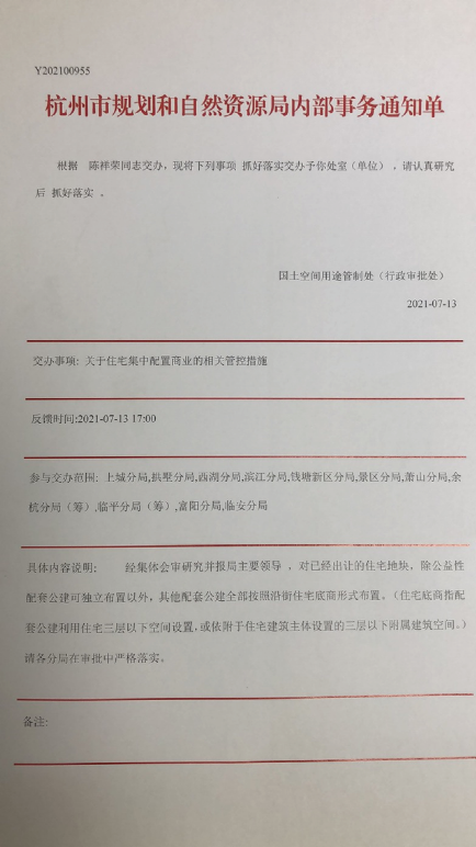 但問題是,7月份中旬,杭州出臺(tái)了一個(gè)新的 “限商墅令”。