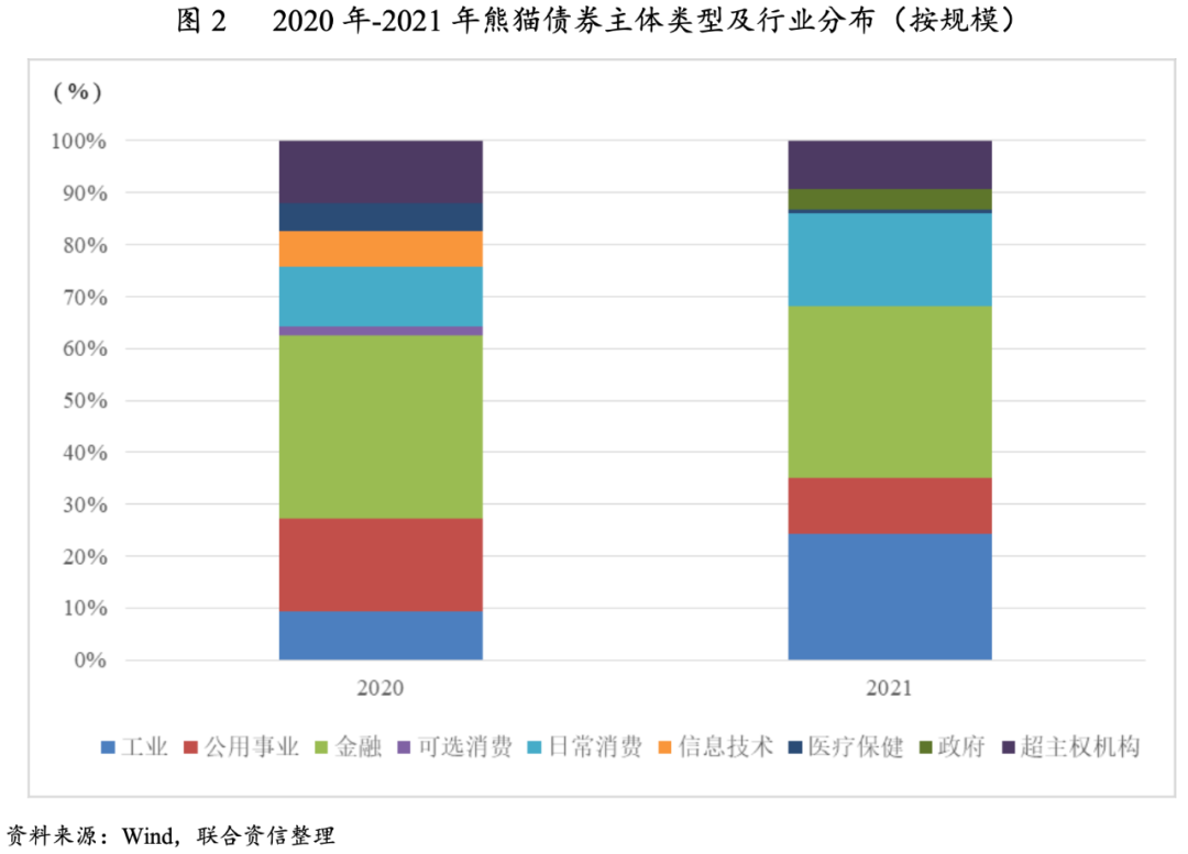 熊貓債券發行主體主要集中在金融、工業和日常消費行業,發行主體類型較上年更加豐富