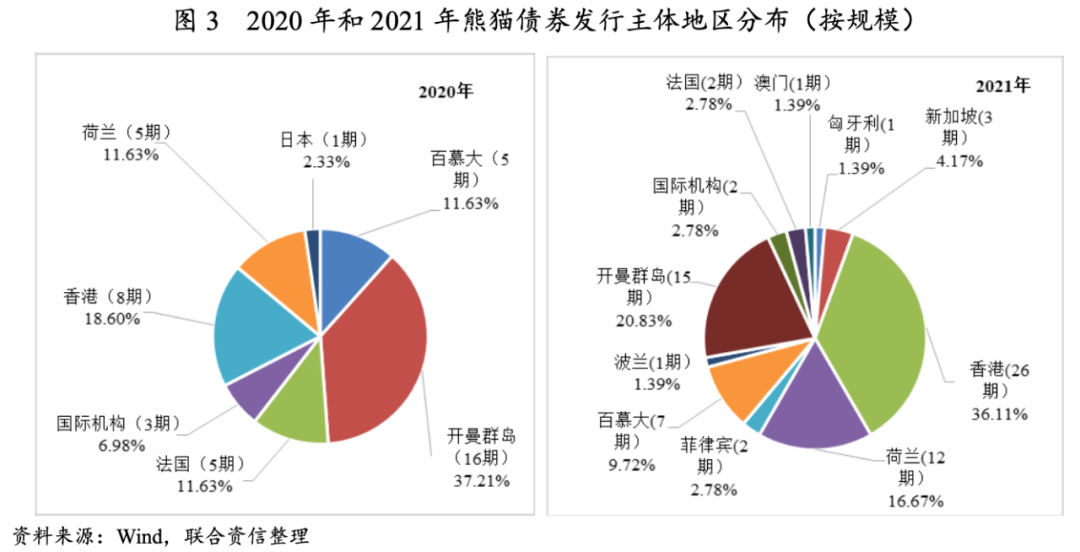 本年度中國債券市場對外開放的進程持續加速,《建設高標準市場體系行動方案》《關于推動公司信用類債券市場改革開放高質量發展的指導意見》《境外機構境內發行債券資金管理規定(征求意見稿)》等監管規定相繼出臺,銀行間市場和交易所市場互聯互通的進程持續推進,熊貓債券發行制度不斷完善。監管規定趨于統一有助于提升熊貓債券發行的便利性,并提升發行人的發行意愿。