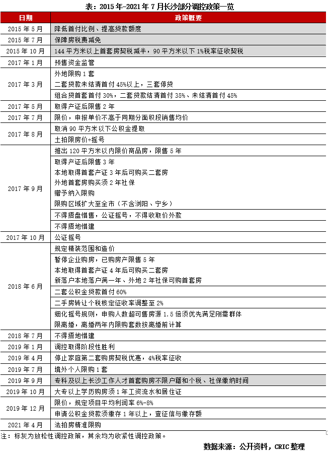 調(diào)控政策快速迭代,層層收緊。以限購(gòu)政策為例,2017年3月首次提出外地戶口在蓉限購(gòu)1套;后2017年9月加碼至外地戶口購(gòu)買首套房須2年社保,限制長(zhǎng)沙本地戶口購(gòu)買二套房須取得首套房產(chǎn)證3年后,并將限購(gòu)區(qū)域擴(kuò)大至全市范圍。此外,2017年至2021年陸續(xù)將贈(zèng)予、離婚、境外個(gè)人、法拍房等納入限購(gòu)范圍。