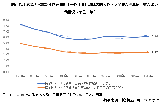 因長(zhǎng)沙整體房?jī)r(jià)在全國(guó)一二線城市中仍處“洼地”,以城鎮(zhèn)居民人均可支配收入測(cè)算的房?jī)r(jià)收入比僅為6.14年,在中部六省省會(huì)城市中處末位,城市經(jīng)濟(jì)發(fā)展面好,房?jī)r(jià)低,買房壓力小,剛需仍是驅(qū)動(dòng)城市成交規(guī)模增長(zhǎng)的重要力量,而對(duì)于本地公務(wù)員等高收入群體而言,買房換房更是毫無(wú)壓力,以在崗職工平均工資測(cè)算的房?jī)r(jià)收入比僅為3.37年,此外,以城鎮(zhèn)居民人均可支配收入測(cè)算的房?jī)r(jià)收入比均有穩(wěn)步下行并持穩(wěn)的趨勢(shì),由此可見,居民購(gòu)買力尚處于較為充沛的區(qū)間。