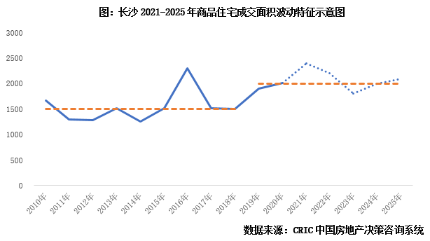 依據(jù)上文對(duì)長(zhǎng)沙長(zhǎng)周期預(yù)判,2010-2018年整體成交規(guī)模低位持穩(wěn),成交中樞處于1500萬(wàn)平方米左右波動(dòng),自2019年以來(lái),我們認(rèn)為進(jìn)入了新的爬升周期,2021年預(yù)期會(huì)達(dá)到突破新高,逼近2500萬(wàn)平方米,而后或?qū)⒂瓉?lái)小幅回調(diào),依據(jù)一輪周期基本在8-10年的推論,2019-2025年或?qū)⑻幱谀昃山灰?guī)模2000萬(wàn)平方米這一中樞高位持穩(wěn),并不會(huì)出現(xiàn)明顯的“大升大降”。