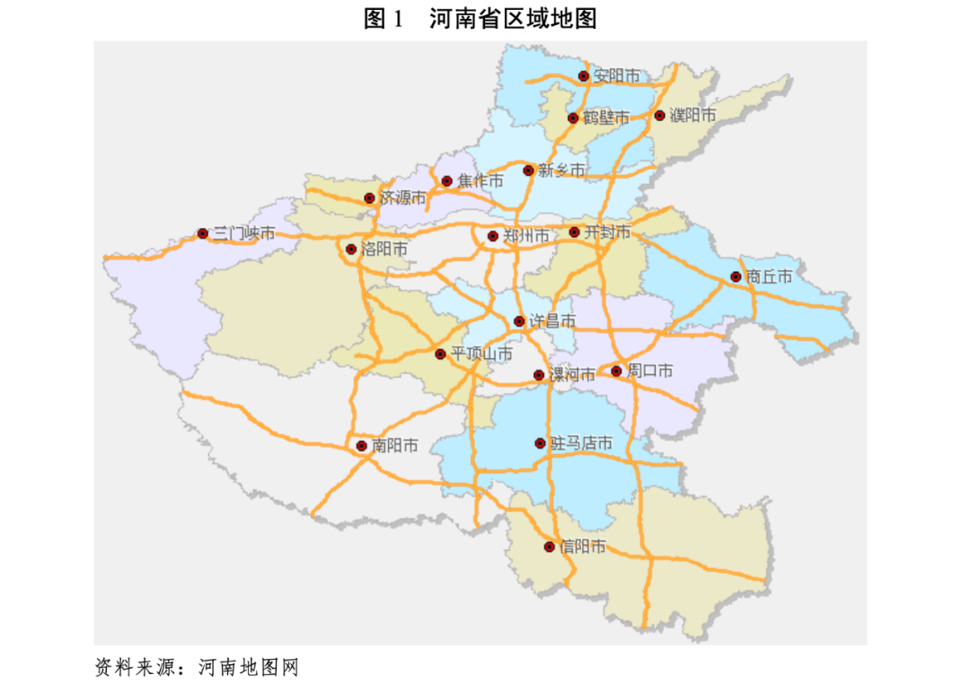河南省,簡稱“豫”,位于我國中東部、黃河中下游,東接安徽、山東,北界河北、山西,西連陜西,南臨湖北,素有“九州腹地、十省通衢”之稱。河南省區位優勢突出,是全國重要的交通樞紐和物資集散地。河南省總面積16.7萬平方公里,占全國總面積的1.73%。地勢西高東低,平原盆地、山地丘陵分別占總面積的55.7%和44.3%。河南省礦產及人口資源豐富,鉬、金、珍珠巖等多種礦產資源儲量居全國前列,礦業產值連續多年位居全國前5位。根據第七次全國人口普查結果,截至2020年11月1日零時,河南省全省常住人口共計9936.6萬人,占全國人口的7.04%,位居全國第三。與2010年第六次全國人口普查數據相比,十年共增加534.2萬人,增長5.68%,年平均增長率為0.55%,人口保持平穩增長態勢。河南省下轄鄭州、洛陽、開封等17個地級市、1個省直管市(濟源市)、21個縣級市、83個縣以及53個市轄區,省會為鄭州市。河南省是我國重要的經濟大省、全國農產品主產區、工業生產基地,隨著中國(河南)自由貿易試驗區、中原城市群、鄭洛新國家自主創新示范區等戰略的推進,河南省不斷加快產業結構優化調整、全方位推進對外開放、積極擴大有效需求、加大重點領域投資力度,近年來整體經濟保持平穩較快增長。