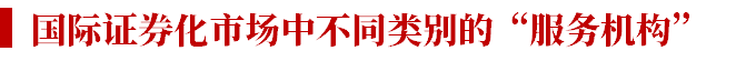 國際證券化市場中,服務機構有多種類型,常見的有初始服務商(Primary Servicer)、總服務商(Master Servicer)、分服務商(Sub-servicer)、特殊服務商(Specialized Servicer)以及優質貸款服務商(Prime Servicer)、次級貸款服務商(Sub-prime Servicer)等區分,具體含義如下: