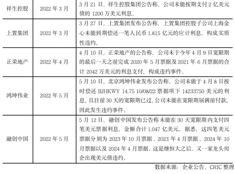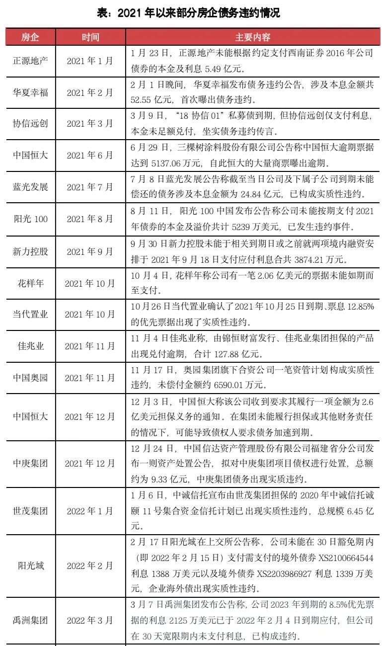 在債務(wù)違約方面,本月龍頭房企融創(chuàng)中國和北京房企鴻坤偉業(yè)分別發(fā)布公告稱未能按期支付旗下境外票據(jù)利息,構(gòu)成了實質(zhì)性違約,融創(chuàng)也是繼恒大之后又一家出現(xiàn)美元債違約的龍頭房企。整體來看,當(dāng)前還有不少房企存在流動性問題,因此未來仍有可能有更多房企曝出債務(wù)違約事件,仍需要行業(yè)注意。